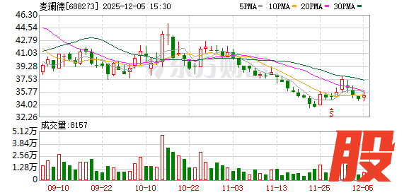 证券日报网讯 12月5日晚间,麦澜德发布公告称,公司于近日收到陈江宁女士出具的《股份减持结果告知函》,获悉其在2025年9月5日至2025年12月4日期间未减持公司股票,本次减持计划时间已届满。